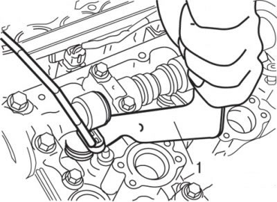 Внимание! Чтобы при замене гидрокомпенсаторов клапаны не могли удариться о поршни, необходимо провернуть коленчатый вал так, чтобы поршни находились ниже ВМТ. В некоторых положениях коромысла клапанов подняты кулачками распределительного вала, поэтому гидрокомпенсаторы нельзя извлечь. В этих случаях коленчатый вал должен занять такое положение, чтобы коромысла клапанов оставались неподнятыми.