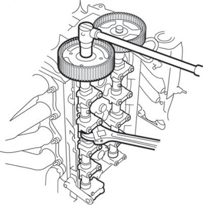 10. Удерживая ключом шестигранные части распределительных валов, отверните болты крепления шкивов распределительных валов и снимите шкивы (рис. 3.16).
