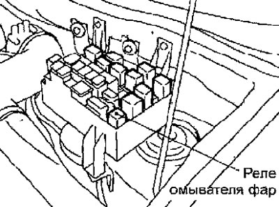 Рис. 17.79. Расположение реле омывателя фар