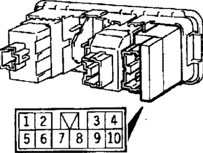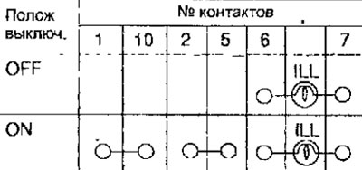 Рис. 19.95. Расположение контактов разъема выключателя заднего противотуманного фонаря