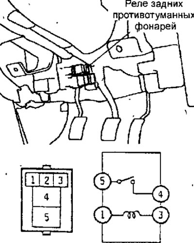 Проверка реле задних противотуманных фонарей