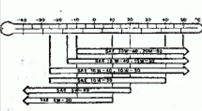 Вязкость моторного масла изменяется с температурой. Поэтому необходимо выбрать вязкость моторного масла, основанную на температурах, при которых автомобиль будет зксплуатироваться после замены масла (рис. 1.3), Выбор другой вязкости, кроме рекомендованной, может привести к серьезному повреждению двигателя.