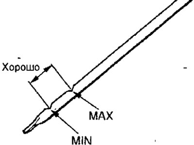 Рис. 3.61. Расположение меток на указателе уровня масла
