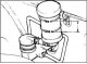 Odstránenie vzduchu z pohonu hydraulickej spojky Pozor! Používajte len predpísanú brzdovú kvapalinu. Nemiešajte brzdové kvapaliny. Brzdová kvapalina: DOT 3 alebo DOT 4. Odstráňte hornú vzperu predného zavesenia....