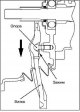 Demontáž a montáž spojky Demontáž dielov sa vykonáva v poradí uvedenom na príslušnom všeobecnom výkrese. Demontáž vypínacej vidlice spojky Posuňte vypínaciu vidlicu spojky v zobrazenom smere,...